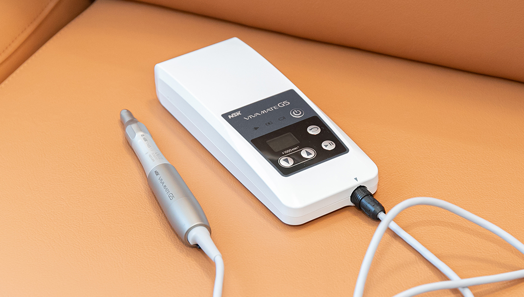持ち運びができる治療用の機械です。歯を削ったり、歯石をとったりといった処置ができます。